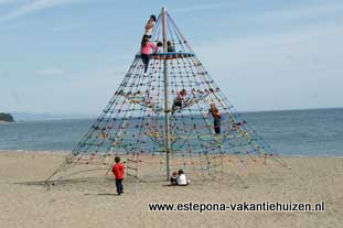 Dan komt u bij chiringuito Bahia Beach, in de zomermaanden hebben ze daar een springkussen voor de kleintjes. Daarna cafeteria Oliveri, voor een heerlijk kopje koffie, lunch of een wijntje. Op de hoek een klasse restaurant El Pescador. Een speeltuin op het strand voor de kleintjes. Daarna chiringuito El Madero, lekker lunchen of dineren of een ligbed huren. Daarna chiringuito Rossi, ook daar kunt u ligbedden huren, lunchen of dineren. Op het strand de ruimte voor volleybal en daarna chiringuito Bikini Beach, met heerlijk ligbedden die iets duurder zijn.